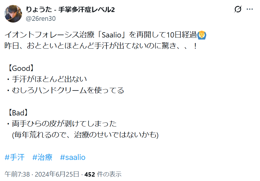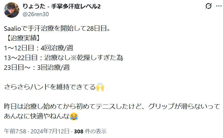 「イオントフォレーシスのおかげで、手汗が気にならなくなった!」