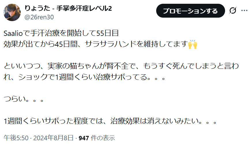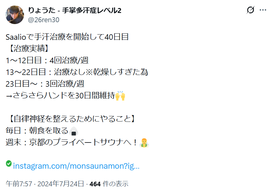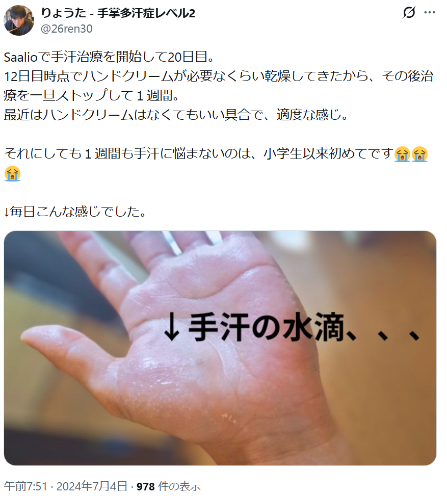 その後、20日目あたりから、生活しやすい適度な手汗が出るようになりました。